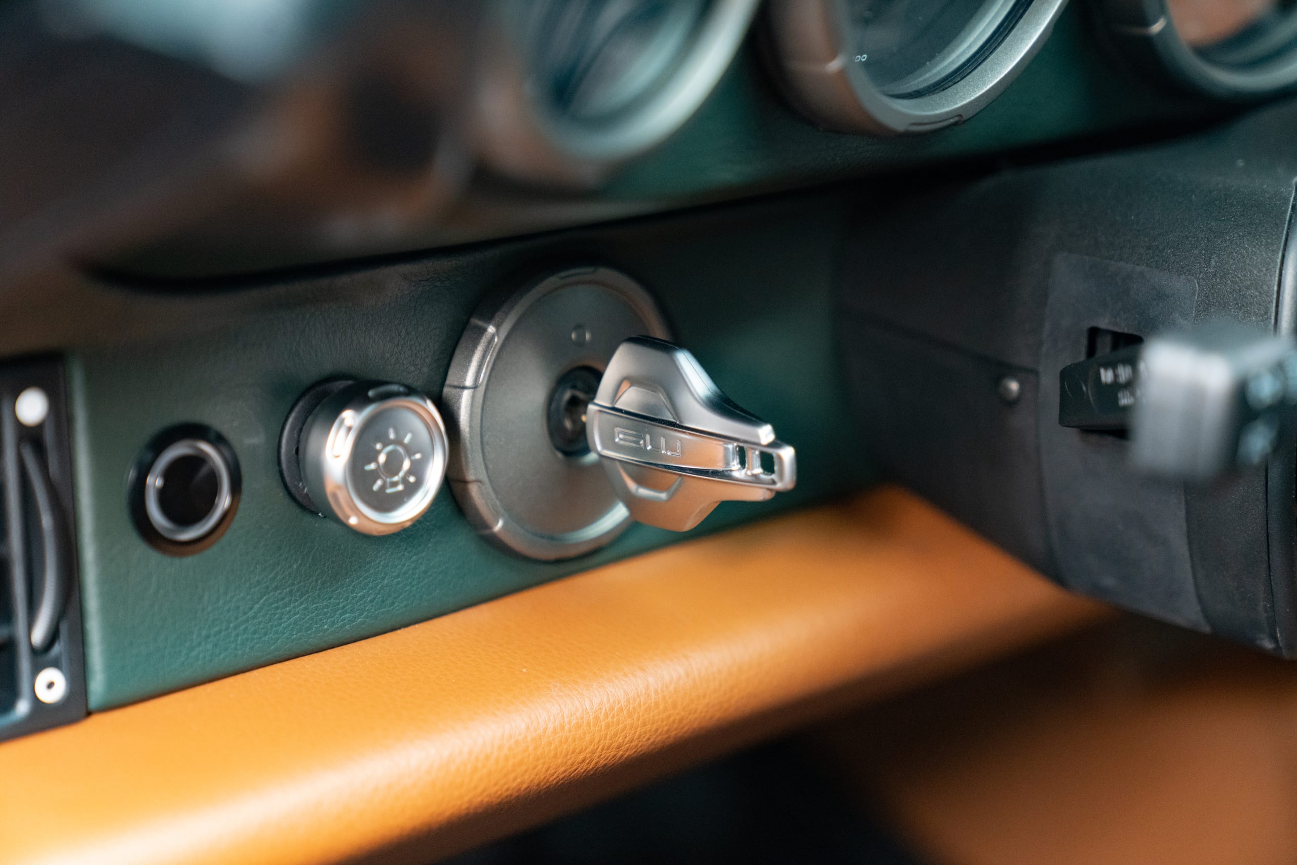 - Leather handbrake tray